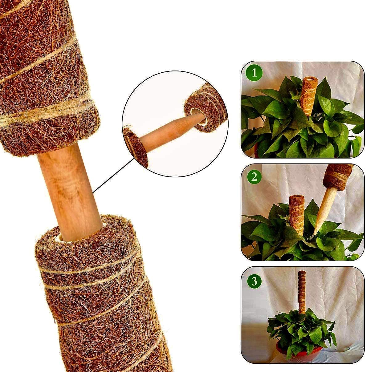- Material de alta calidad: el poste de musgo está hecho de fibra de musgo de coco natural y la cubierta interior está hecha de PVC reforzado, por lo que es muy duro y resistente al desgaste. Es respetuoso con el medio ambiente y se puede utilizar durante mucho tiempo. Puede ayudar a las plantas a retener agua y nutrientes, para que puedan crecer mejor.