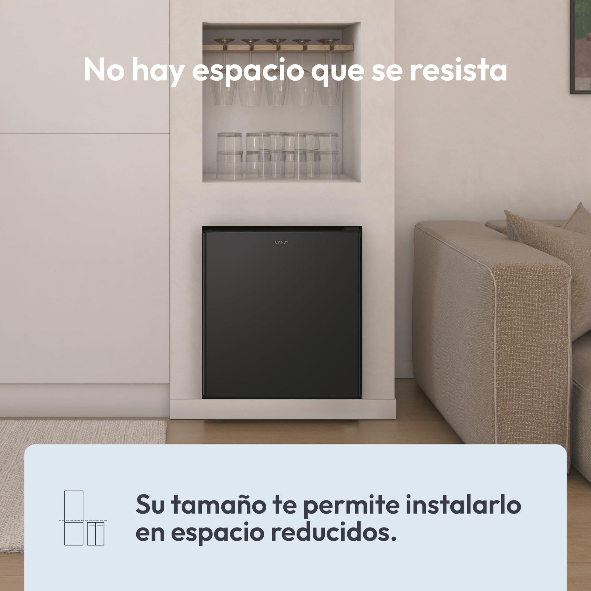 El minibar Candy CHASD4351EBC es la solución perfecta para quienes buscan un refrigerador compacto, funcional y elegante. Con una capacidad de 43 litros y un diseño bajo encimera de 51 cm de alto y 44,5 cm de ancho, este frigorífico mini es ideal para oficinas, dormitorios, zonas de ocio o segundas residencias.