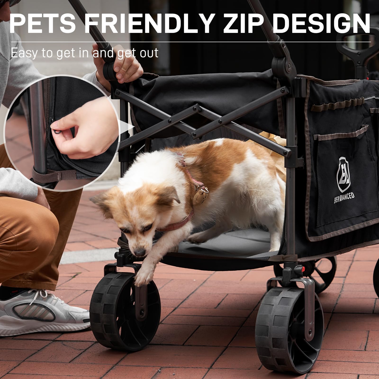 - Mayor capacidad: este vagón plegable es más profundo que los vagones normales y mide 108 cm de largo x 53 cm de ancho x 108 cm de alto cuando está abierto. Cuenta con 2 portavasos y múltiples bolsillos laterales para llevar más artículos