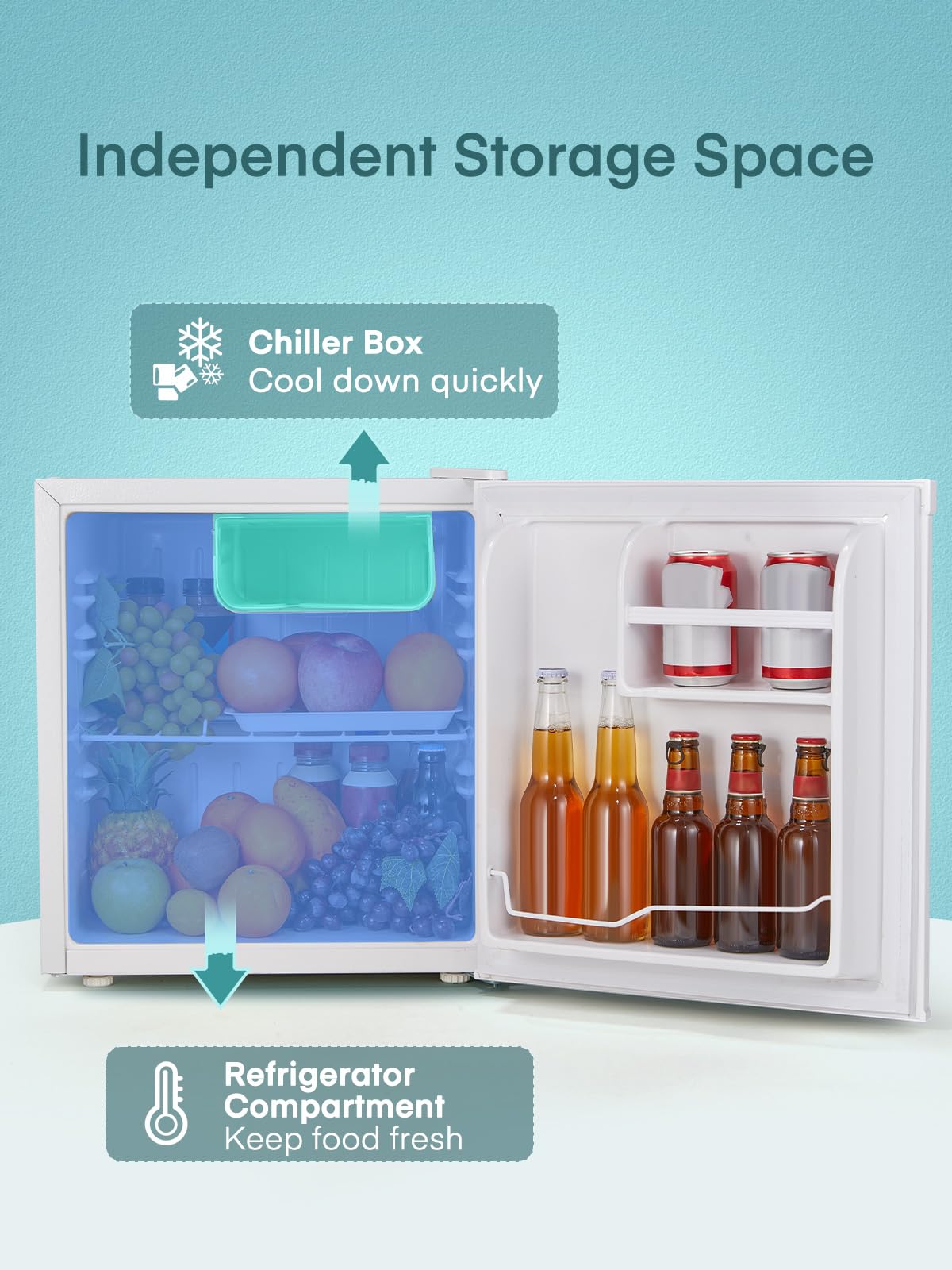 El minibar FOHERE de 46 litros ofrece una solución compacta, eficiente y silenciosa para conservar tus alimentos y bebidas en cualquier espacio. Su diseño minimalista en color blanco lo hace perfecto para el hogar, oficinas, habitaciones de hotel o incluso campings.