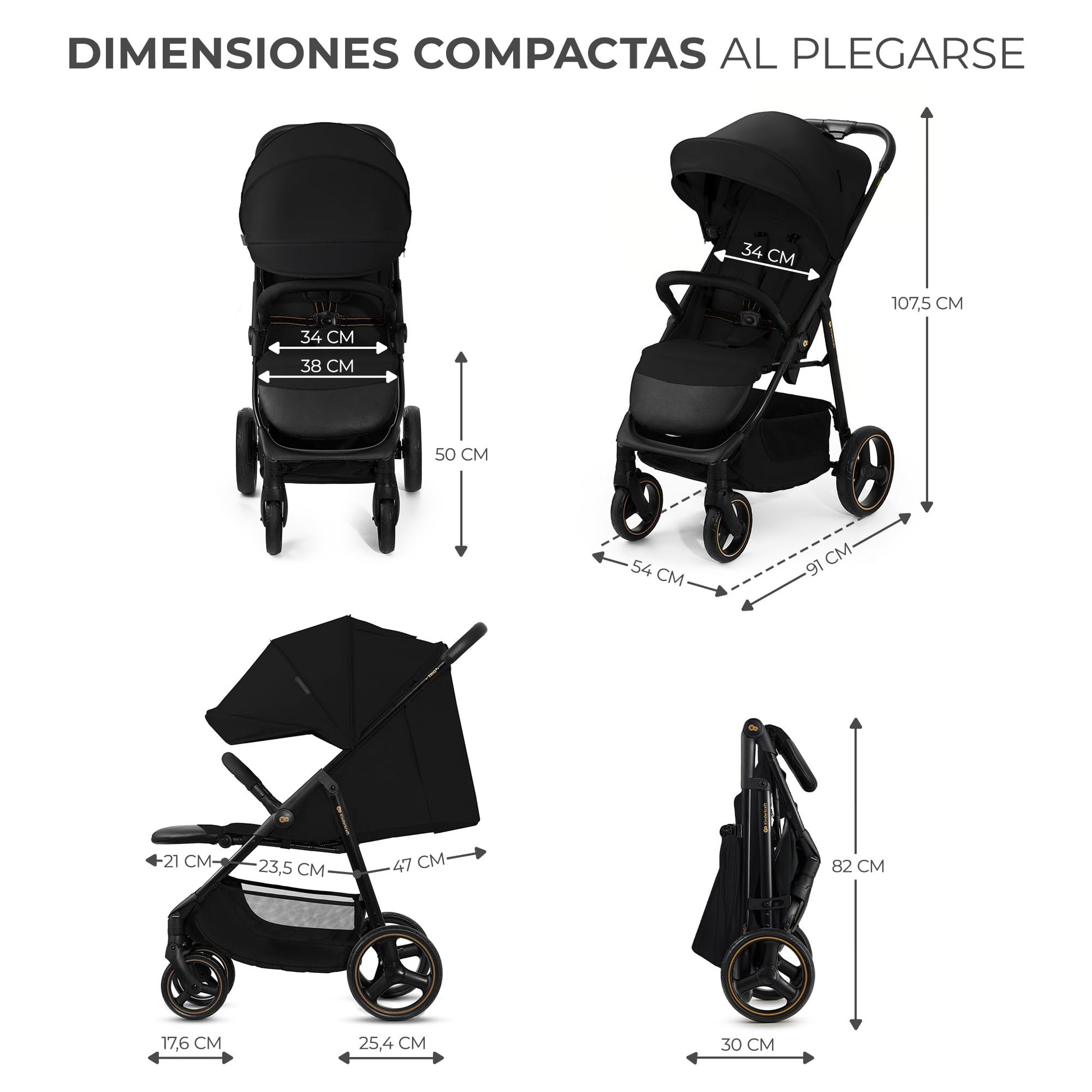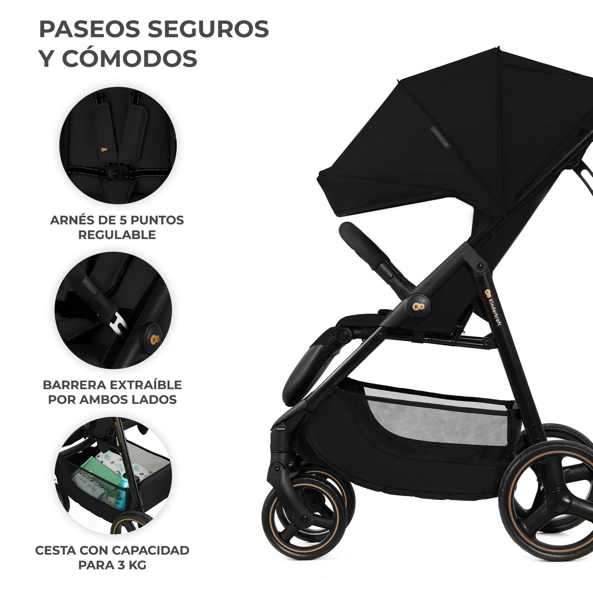 - ✅ SEGURO: el carrito posee un cinturón de 5 puntos regulable con acolchados y protector de entrepierna. Junto a las ruedas traseras hay un freno central STOP & RIDE que se pulsa desde arriba y no deteriora el calzado. Además, cuenta con una barrera de protección clásica.