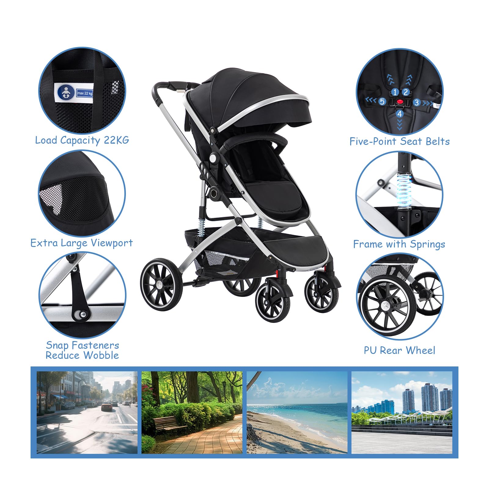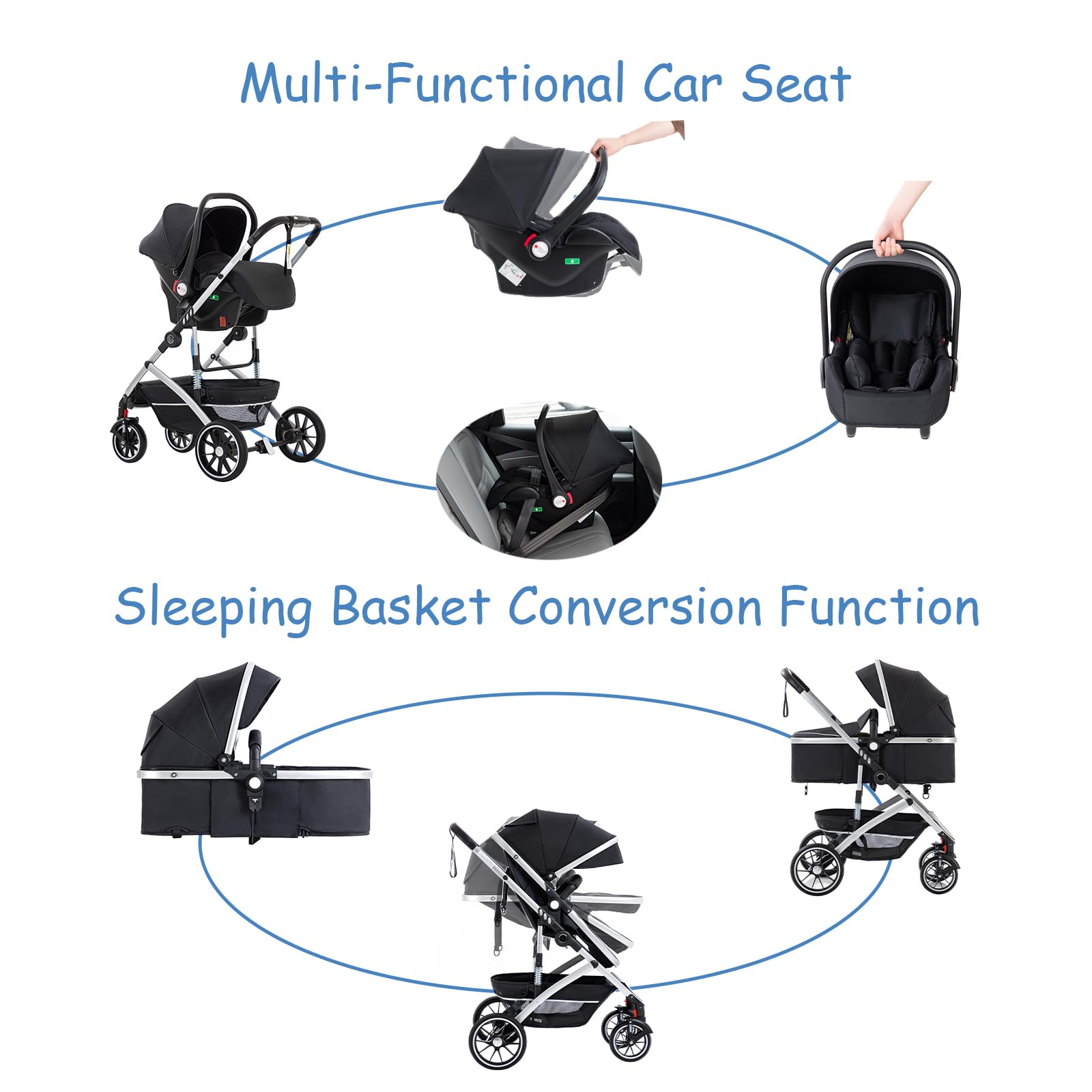 - Cesta de dormir ampliada y silla de auto regulable: La cesta de dormir de la silla de paseo tiene una anchura interior ampliada de 38,5 cm, adecuada para bebés de todos los tamaños; la silla de coche equipada se fija rápidamente al coche mediante el cinturón de seguridad de a bordo; con el conector montado en el chasis, puede cambiarse sin problemas al modo combinado "silla de coche + cochecito"; y el reposacabezas puede ajustarse en la parte trasera para adaptarse a la altura del bebé