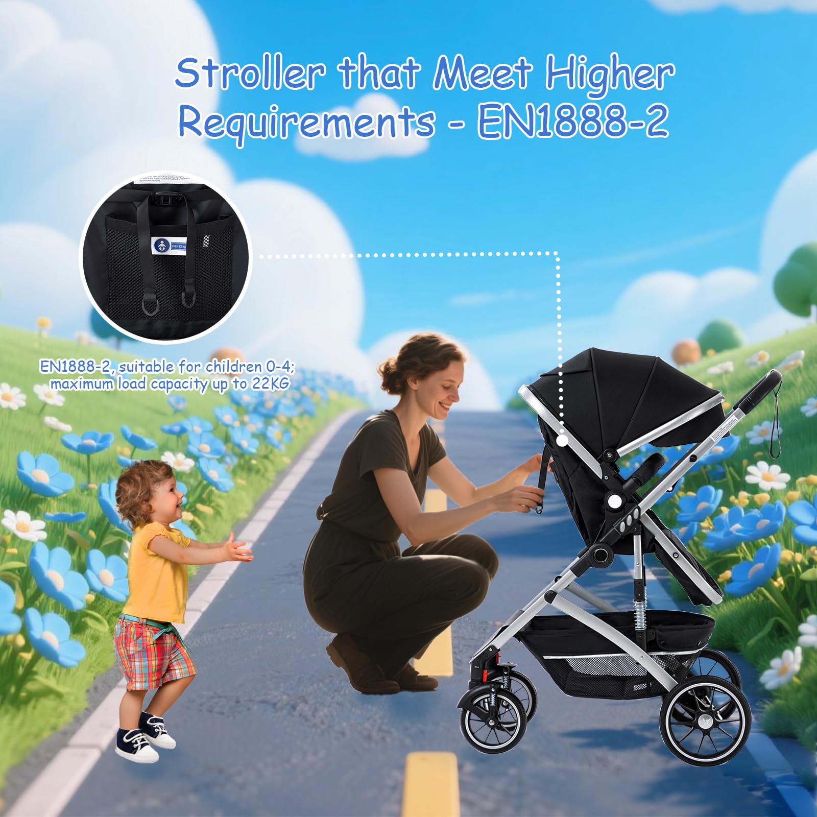 - Super alta protección de seguridad y accesorios proporcionados: El cochecito bebe es de alta calidad de acuerdo con la norma EN1888-2 para bebés y niños pequeños de 0-4 años de edad, hasta 22KG, con ruedas duraderas y antideslizantes sin olor irritante; y le proporcionaremos una garantía gratuita de un año a partir de la fecha de compra. Además, también le proporcionaremos mosquitera, cubierta para la lluvia, portavasos, correa para la muñeca, bolsa para la momia, cojín,etc.