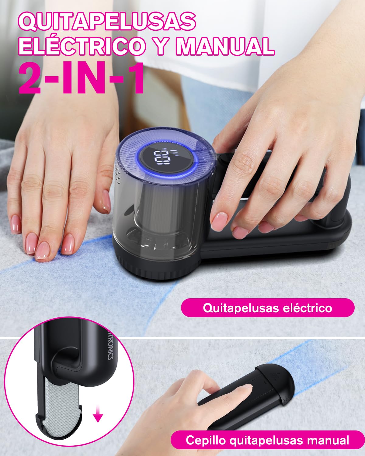 - 【Fácil de Usar y Limpiar】 El quitapelusas incluye un gran recipiente recolector desmontable viene con un cepillo para quitar pelusas, para facilitar la limpieza de las pelusas acumuladas, haciendo que mantener tu ropa y sofás libres de borbotos sea rápido y sencillo.
