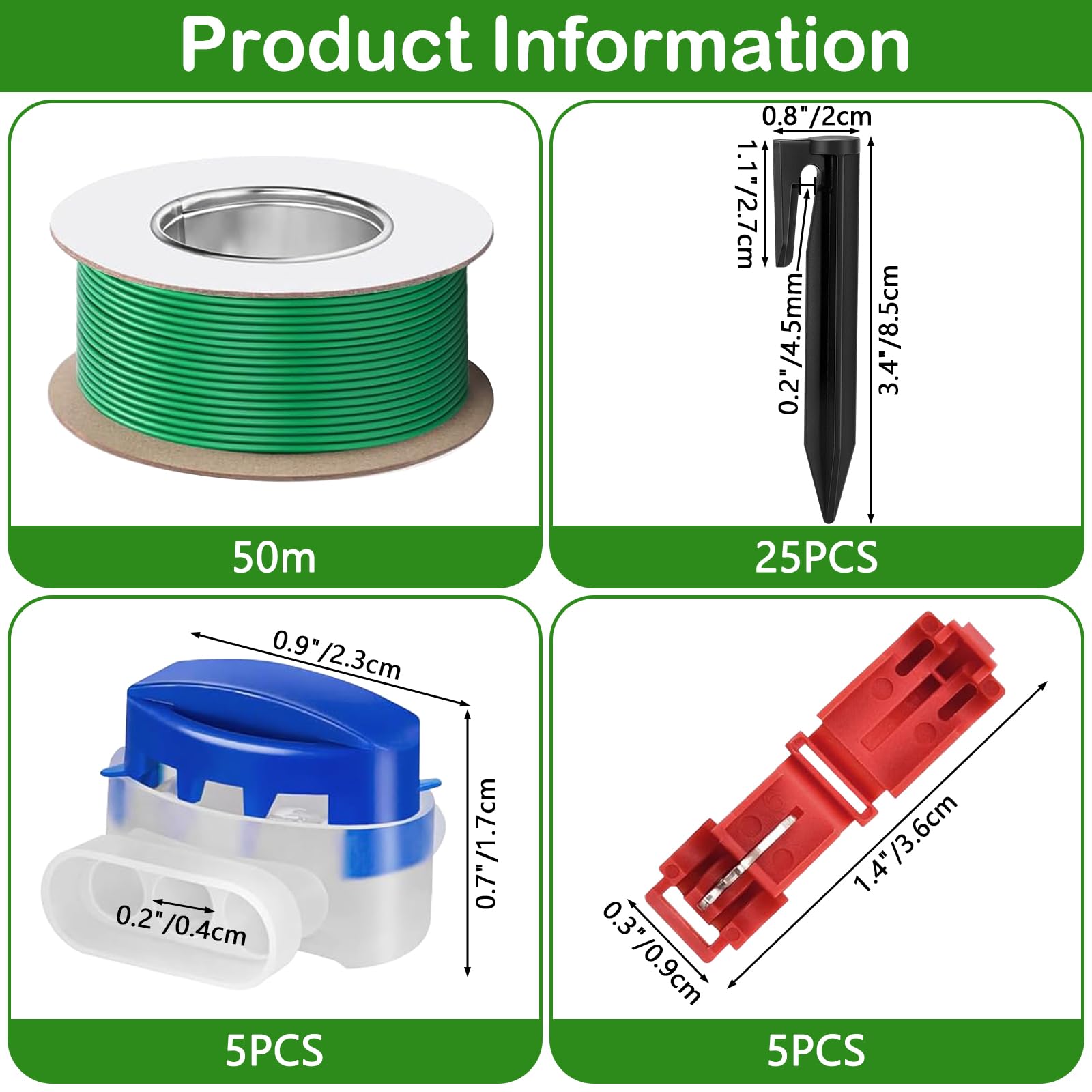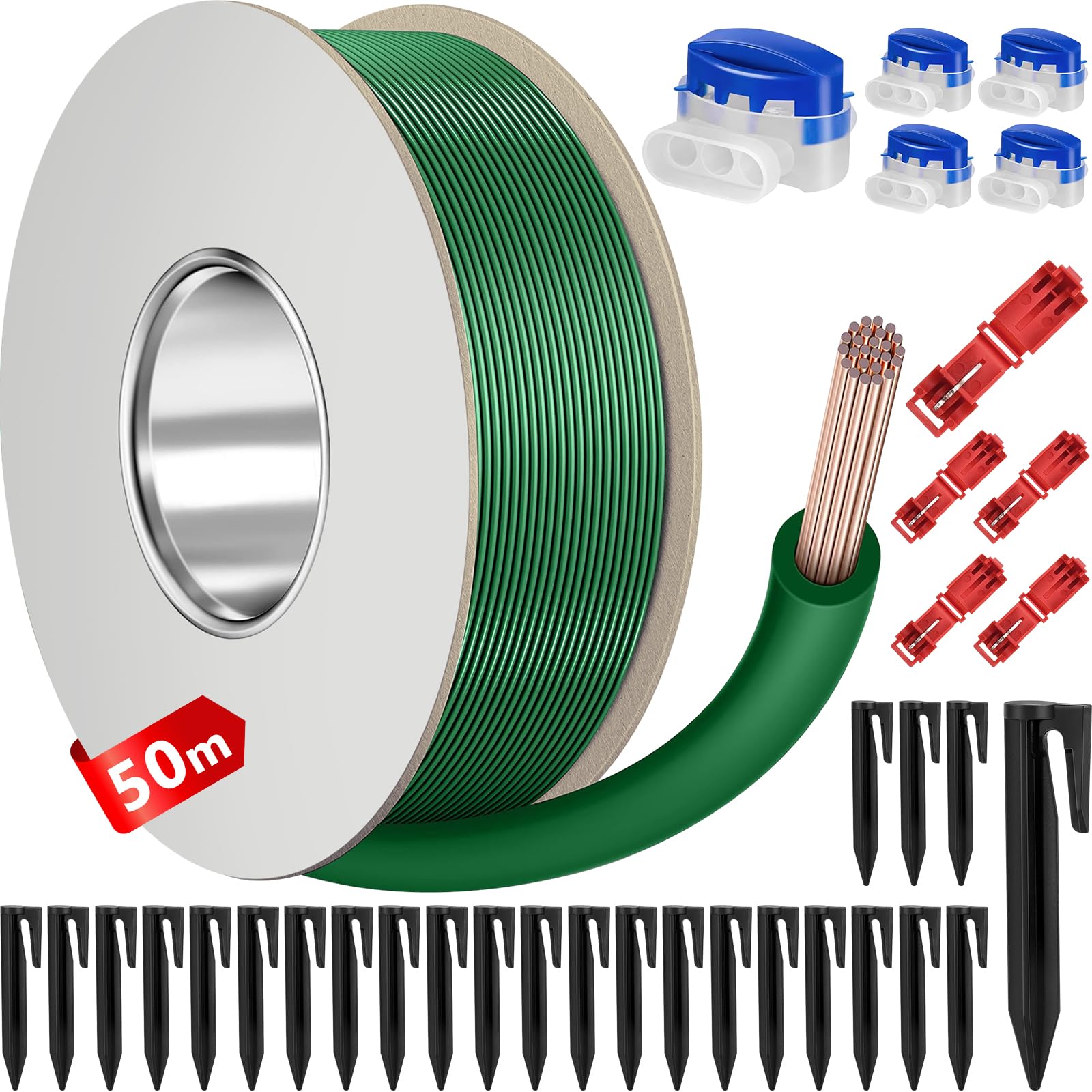 - 【Contenido del Paquete】 El set de accesorios para robots cortacésped contiene 50 metros de cable delimitador, 25 piquetas de tierra, 5 conectores de cable, 5 terminales de conexión, incluye un juego completo de herramientas para robot cortacésped, fácil de usar.