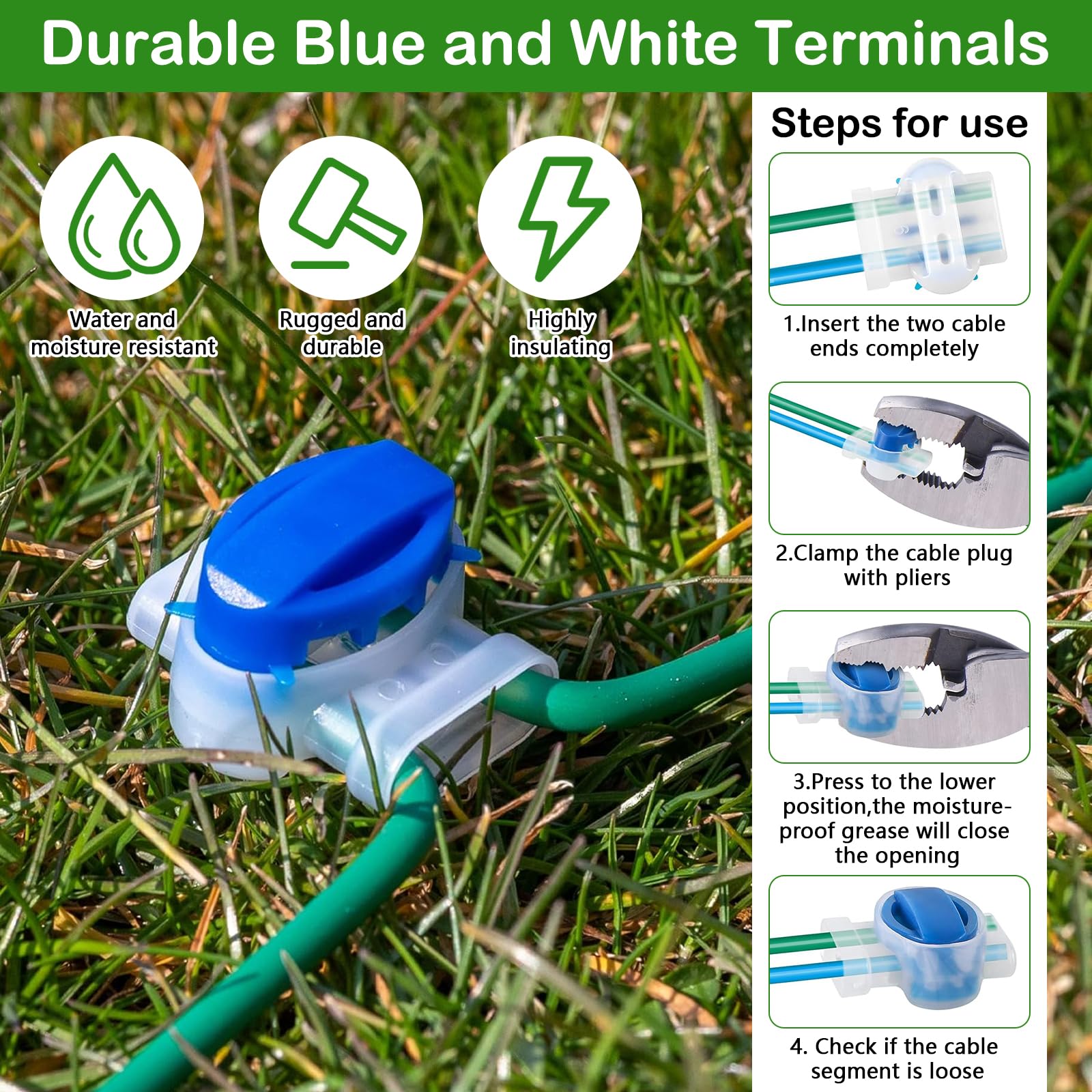 - 【Material de alta Calidad】 Picos de tierra, conectores de cable, terminales de conexión, resistentes y duraderos con una excelente durabilidad al aire libre, la capa exterior del cable para robots cortacéspedes de césped robótica está hecha de material aislante, que puede soportar condiciones climáticas extremas como lluvia, sol, nieve y heladas, lo que garantiza una buena transmisión de señal y rendimiento.